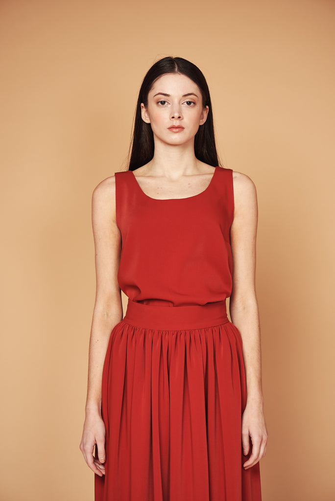Asura Top: Simply and flatteringly designed, with a classic scoop neck and daringly beautiful color, this top is easily styled, while remaining simplistically beautiful. You are sure to gravitate toward this piece once intertwined within your wardrobe.